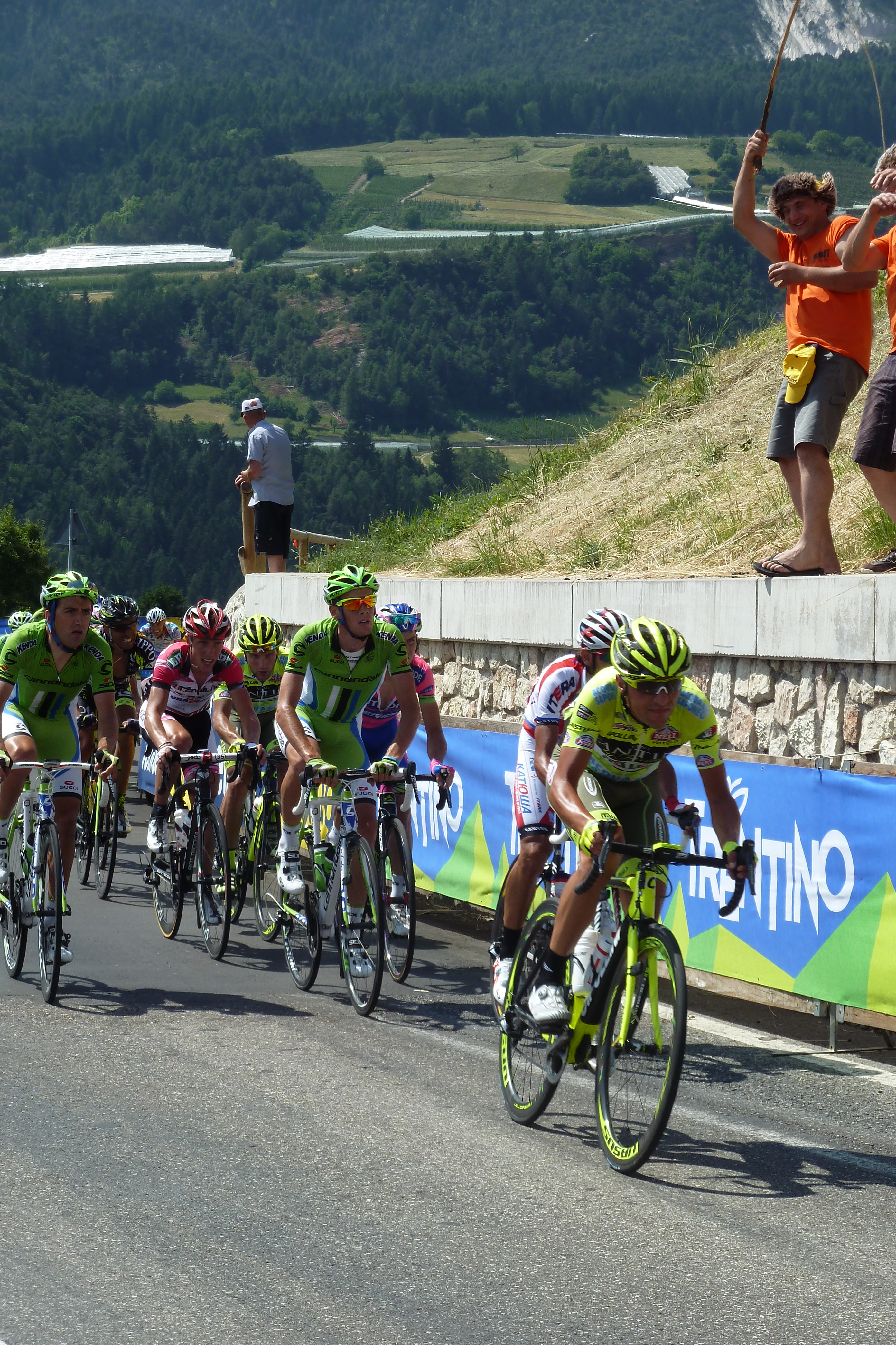 This time the Trofeo Melinda was assigning the title of the best italian rider as it was the national championship. It took place in the area were the Moser family lives, so all expectations were on Moreno to grap the title, as he was off to the Tour de France exactly a week later. The pressure was building on the Cannondale team, and they were the team with more riders alongside Androni Giocattoli as Pellizzotti was defending his title won the year before. The day was sunny and the air was cool, as we say the perfect temperature for a bike ride. In fact the children loved it, and at our pace we did 1 lap, for them to see how hard it was for the riders. They also experienced a “ravitaillement” which is the moment when the riders take the food bag, to throw it away once emptied. They collected quite a number of team bottles. The crowd was good, and the momentum was inceasing lap by lap anf from the last 3 the cheering was pretty loud. The title was won by Santaromita of BMC who in the end was alone as the other team mate was way back. After the winning ceremony it was easy to approach the riders, it was a very familiar atmosphere, really a good day full of cycling.